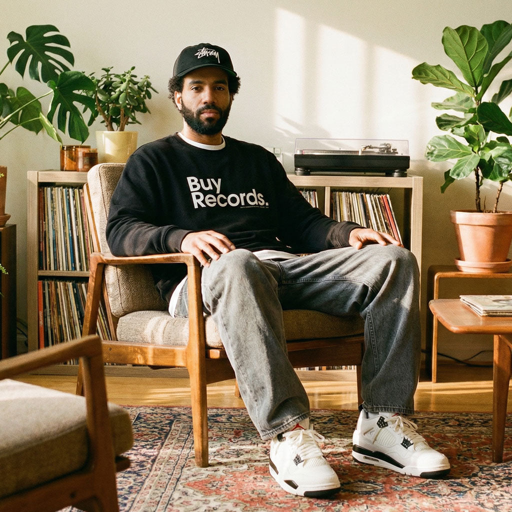 The 'Buy Records' graphic was first released back in 2012, with its bold instruction quickly making it popular among music heads worldwide. Inspired by a love of collecting vinyl, sampling, creating and listening to independent music, its simple message still carries analogue weight in a digital world.